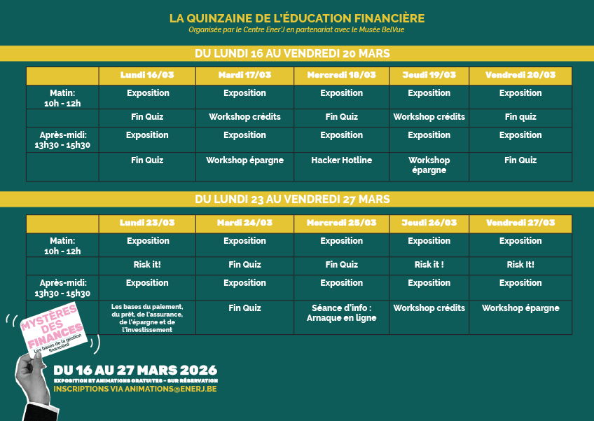 Une initiative portée par le Centre Ener’J et le Musée BELvue, en partenariat avec Febelfin, Assuralia et avec le soutien de la Ville de Charleroi.